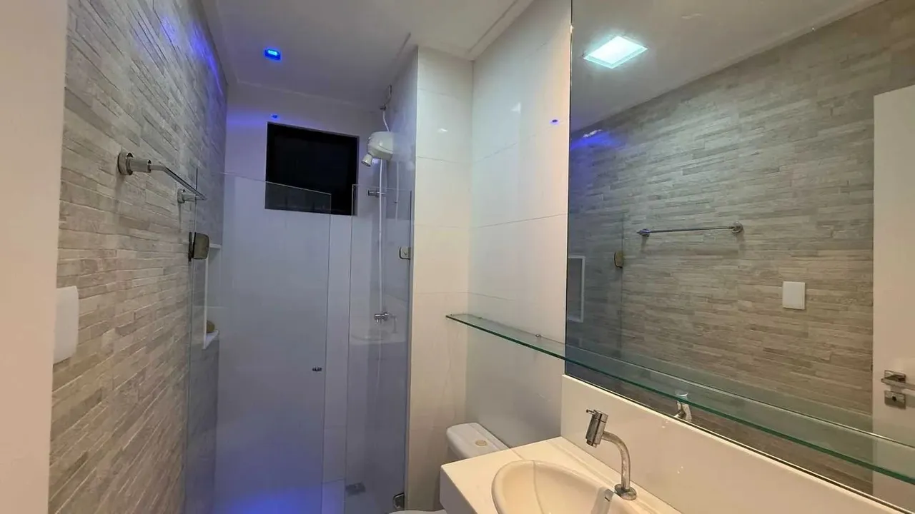 Este apartamento possui 95 m², bem distribuídos em 2 quartos (sendo 1 suíte), 3 banheiros, sala ampla e aconchegante, além de cozinha funcional com área de serviço.
