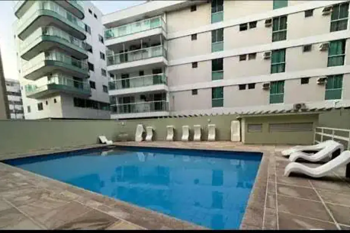 Apartamento mobiliado à venda em Cabo Frio conforto, com 68m2, 2 quartos suíte, sala, cozinha e 2 banheiros a poucos passos do mar.