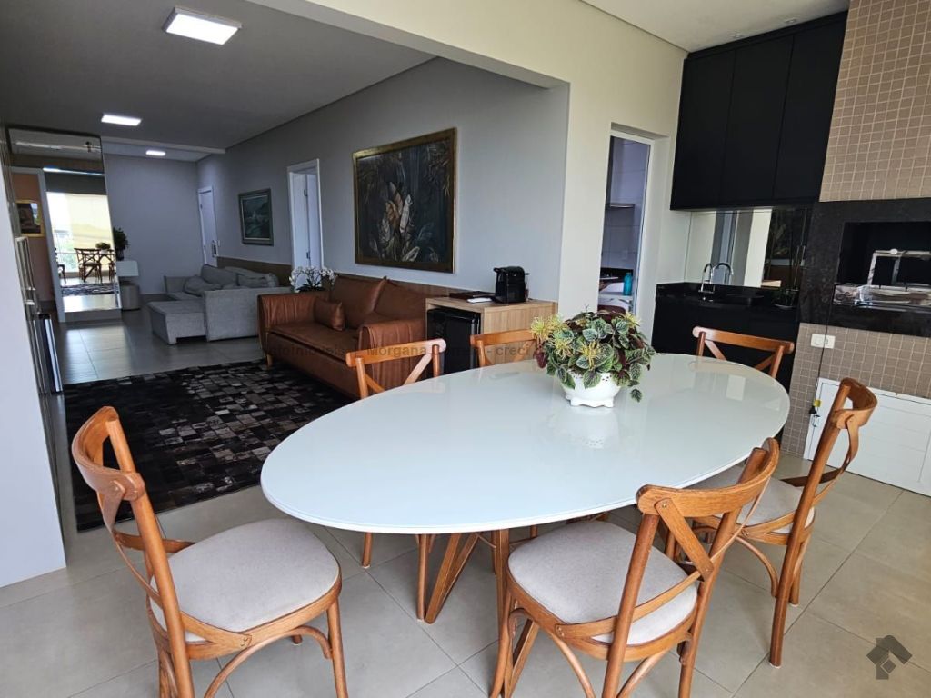 A área íntima conta com três suítes, garantindo conforto e privacidade. Para o lazer particular, a ampla sacada com churrasqueira é o local ideal para momentos de convívio com uma vista privilegiada.
