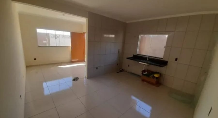 Casa nova. Bairro Aquarius. Sala ampla, cozinha azulejada, 02 quartos, sendo 01 suíte, 02 banheiros azulejados, piso porcelanato, varanda, quintal, garagem coberta, corredor lateral, casa de laje, lavanderia coberta, terreno nascente, sendo 145m² área total e 70m² área construída, terreno caída pra frente, aceita financiamento.