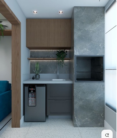 Apartamento com 2 quartos, sala e cozinha integrado, com armários embutidos, banheiro, sacada com churrasqueira e 1 vaga de garagem.