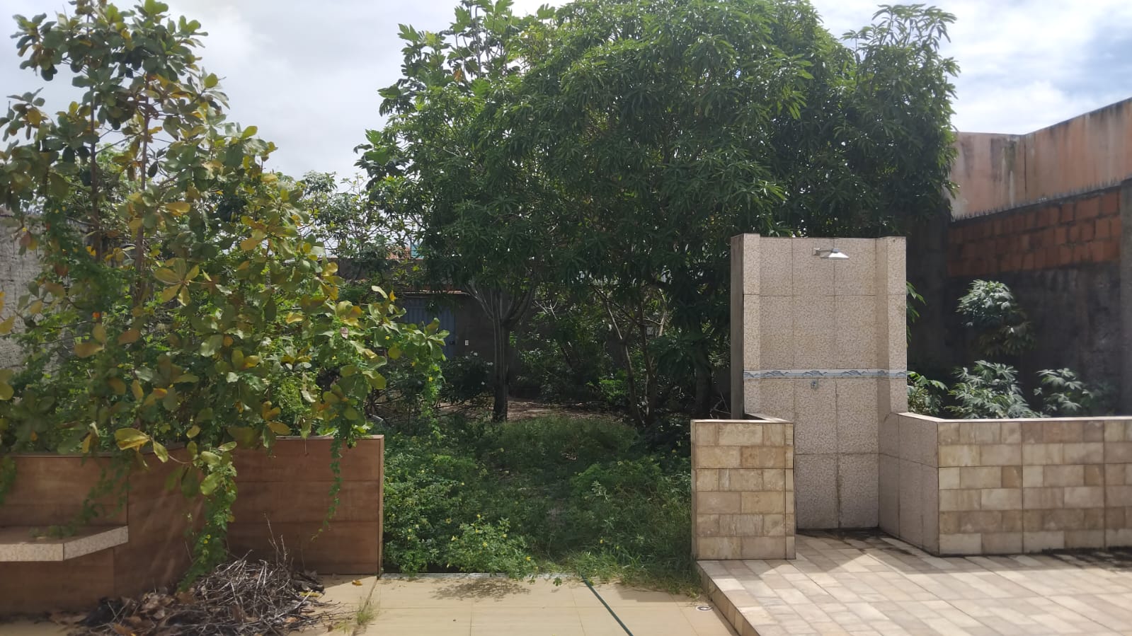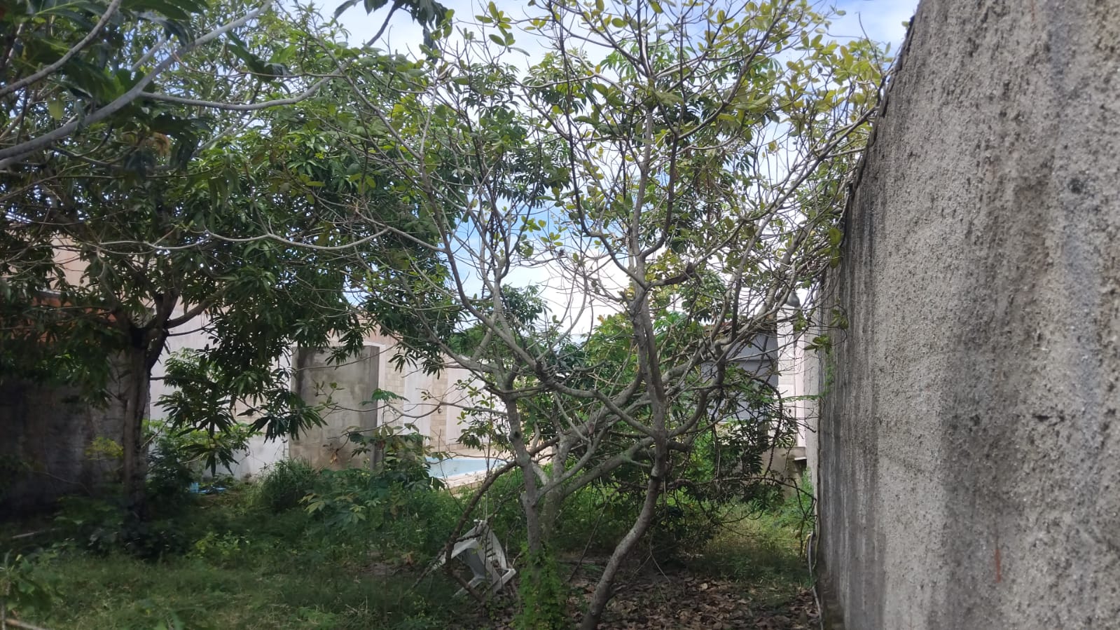 Terreno com 300 m², totalmente murado, arborizado e com estrutura de lazer inacabada.